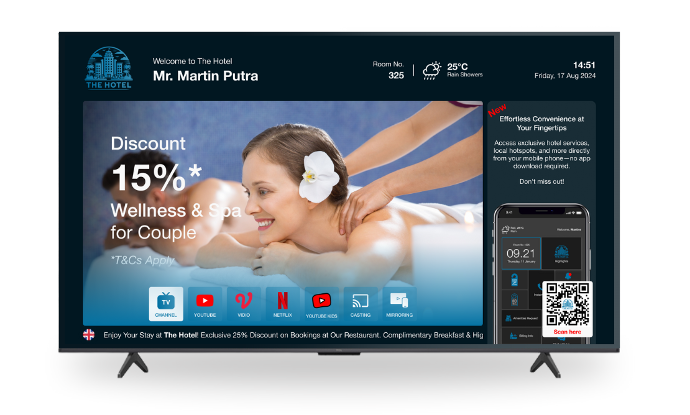 Aptavis IPTV Systems delivers entertainment, but APTACare Mobile Concierge offers so much more—seamless VoIP, chat, and instant access to hotel services, all from the guest’s own device, enhancing convenience and personalization beyond TV control.