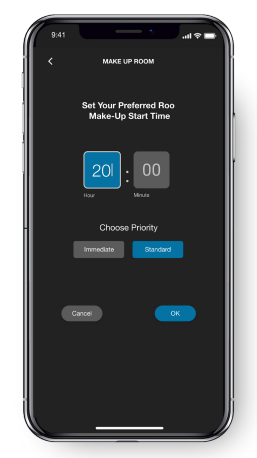 Guests can manage "Make Up Room" and "Do Not Disturb" requests directly from their mobile devices, supporting green initiatives by reducing unnecessary room visits and minimizing paper use.
